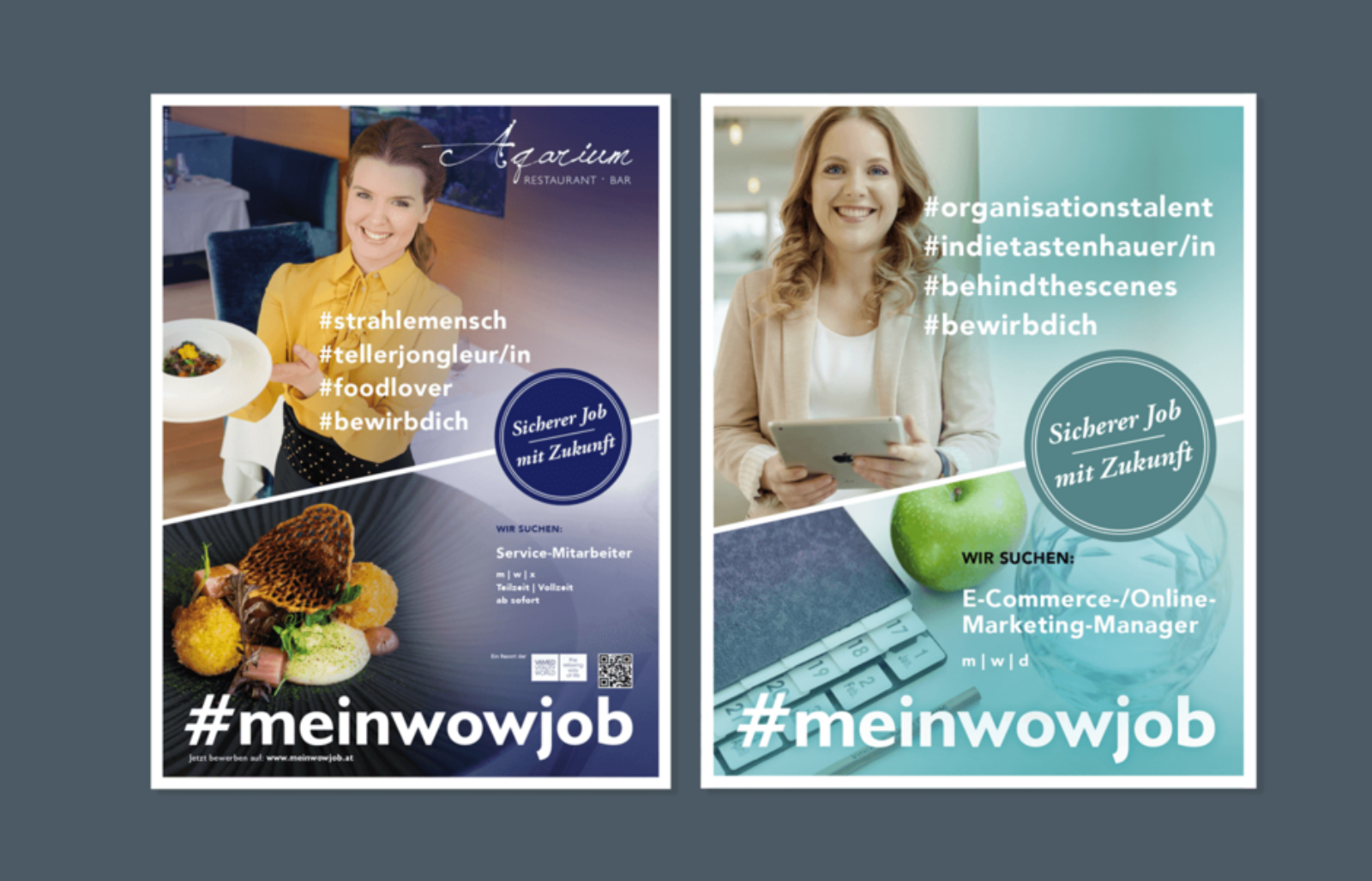 Auch im Recruiting ist heutzutage ein guter Auftritt das Um und Auf, damit wirklich jene Bewerberinnen und Bewerber angesprochen werden, die es für den jeweiligen Job braucht. Mit der frechen Kampagne #meinwowjob hat REICHLUNDPARTNER für die Therme Geinberg eine Linie entwickelt, die einerseits exakt auf die Zielgruppe fokussiert und sich andererseits auch harmonisch in den Auftritt der Therme einfügt.