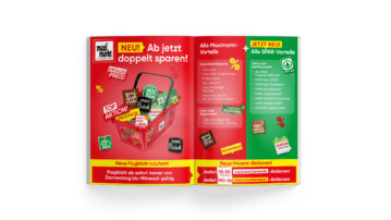 Dem Flugblatt kommt als Maximarkt Kommunikationsmedium Nr. 1 eine zentrale Rolle zu. In enger Abstimmung mit Maximarkt und SPAR wurde es einem revolutionären Relaunch unterzogen – mit neuem Preiselement, markenspezifischen Wordings, reduzierter Farbwelt, moderner Bildsprache und klarer Gestaltung.