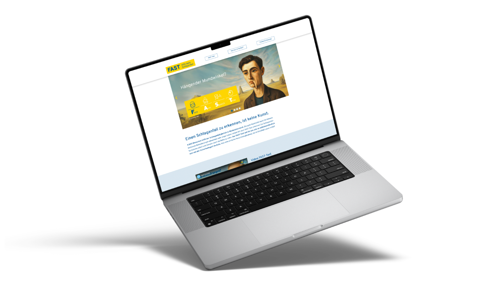 Wir haben eine übersichtliche Landingpage geschaffen, die als erste Anlaufstelle alle wichtigen Informationen zum FAST-Test bündelt. Sie zeigt verständlich, wie man Schlaganfall-Symptome in Sekunden erkennt, typische Anzeichen richtig deutet und im Notfall handelt – inklusive Kurzvideo. Ergänzend bietet die Seite kompakte Informationen zu Risikofaktoren und Prävention.