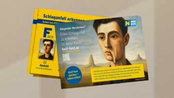 Der Media-Mix umfasst reichweitenstarke Printmedien, eine breite Online- und Social-Media-Kampagne mit zahlreichen Werbemitteln sowie die Präsenz auf über 250 Digital-Out-of-Home-Screens. Ergänzend dazu wurde die Landingpage www.fast-test.at umgesetzt, auf der sich die Bevölkerung weitere wertvolle Informationen holen kann. So werden die Niederösterreicherinnen und Niederösterreicher umfassend darüber informiert, wie man im Falle eines Schlaganfalls Leben retten kann.
