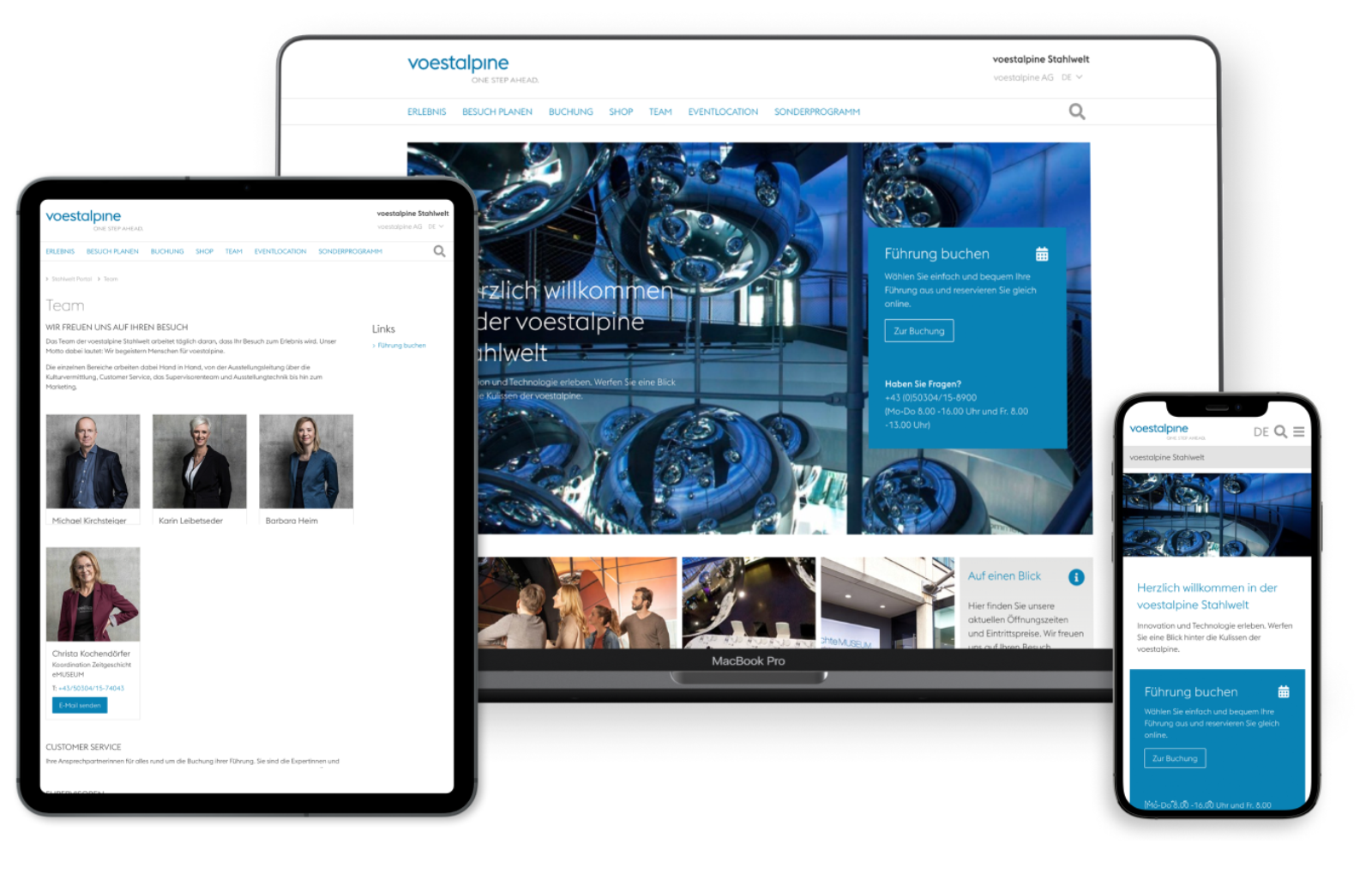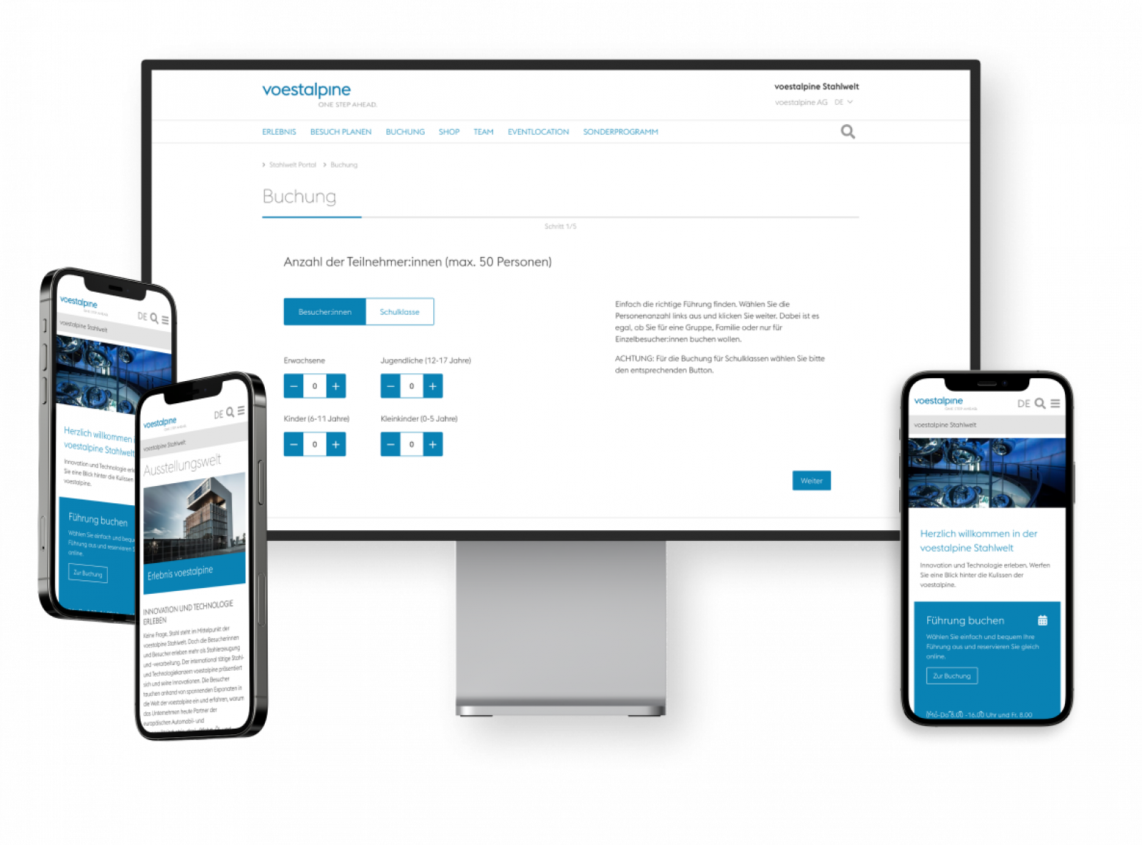 Es war von entscheidender Bedeutung, den Websitebesuchern einen klaren Überblick über die verschiedenen Touren in der Stahlwelt zu bieten. Durch ein mehrstufiges Buchungsformular wird der Nutzer Schritt für Schritt durch den Buchungsprozess geführt und auf zusätzliche Angebote aufmerksam gemacht. Die Übersicht der Touren wird automatisch anhand der Buchungsdetails des Nutzers erstellt, einschließlich Teilnehmeranzahl und Alter der verschiedenen Gäste. Zusätzlich wurde die Buchungsübersicht für die Buchungsverwaltung und den Guides, denen ja Buchungen zugewiesen werden komplette neu nach den Führungsterminen strukturiert. Sowie Führungen und Buchungen können individuell vom Team angepasst oder neue hinzugefügt werden. Guides können angelegt und verwaltet werden und können Ihnen Verträgen entsprechend abgerechnet werden. Eine Auswertung ermöglicht einen klaren Überblick über die Auslastung.