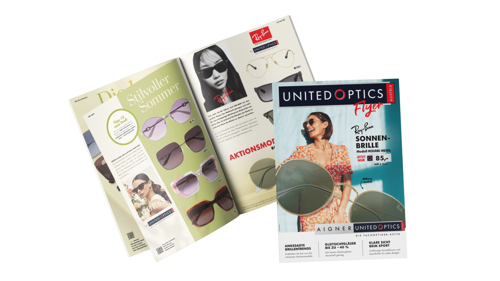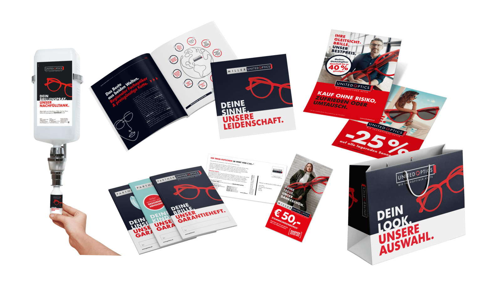 Lebensfrohe Menschen in Alltagssituationen vermitteln positive Stimmung, ein durchgängiges „Dein/Unser“-Wording spricht die Kund:innen direkt und persönlich an. Motive und Headlines sind auf die unterschiedlichen Zielgruppen abgestimmt, als Wiedererkennungsmerkmal kommt eine große Brille zum Einsatz. So werden die Kernwerte von UNITED OPTICS – die Leidenschaft fürs Fachgebiet, individueller Kundenservice und die Sicherheit eines konkurrenzlos günstigen Angebots – in allen Werbemitteln kommuniziert.