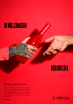Daher arbeiten wir mit mehreren geteilten Sujets, die jeweils zwei Produktwelten vereinen. Dabei kombinieren wir Gebinde unterschiedlicher Produktkategorien und fügen sie zu einem neuen Ganzen zusammen. Auf den Service-Sujets interagieren jeweils 2 Hände verschiedener Protagonisten mit einem Müller Glas Produkt. Darüber hinaus brauchte es einen ausdrucksstarken Kampagnen-Claim, der dieses breite Produkt- und Leistungs-Spektrum dramatisiert: „Bei uns ist wirklich alles drin.“ Dazwischen eröffnen die Headlines die Bandbreite des Angebots in „Ob-oder“-Mechanik, die dann durch den Claim aufgelöst wird. Neben Print-Sujets und einem aufwendig gestalteten Referenzenfolder zeichnet REICHLUNDPARTNER auch für das Homepage-Design, den Social Media-Auftritt, Videos mit Kunden-Interviews sowie die zeitweilige PR-Betreuung verantwortlich. Im Jahr 2023 wurde dieses Projekt mit dem ORF-Werbehahn ausgezeichnet.