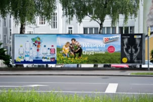 Die Blumewiese gibt es übrigens auch in echt. Rund 10.000 Stiefmütterchen werden auf einer Wiese unterhalb des Pöstlingbergs gepflanzt und lächeln von dort den OberösterreicherInnen zu. Zusätzlich zu dieser Guerilla-Aktion und dem 35-sekündigen TV-Spot haben wir folgende Werbemittel umgesetzt: CityLights, Plakate, Formatsprengung auf der Westbrücke (inkl. Teaser und Auflösung), online Ads, Hörfunk und Print.