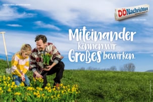 Die Kampagne läuft unter dem Motto: „Miteinander können wir Großes bewirken.“ Um das zu zeigen, erzählen wir die Geschichte von einem Vater, der für seine Tochter in diesen trostlosen Zeiten ein positives Zeichen will. Er will für sie einen gigantischen Smiley aus Blumen pflanzen. Die Arbeit ist anstrengender als gedacht – doch mit der Hilfe seiner Tochter kann er es schaffen. Als der Smiley erblüht, bereitet er aus der Ferne noch vielen anderen Menschen eine Freude.