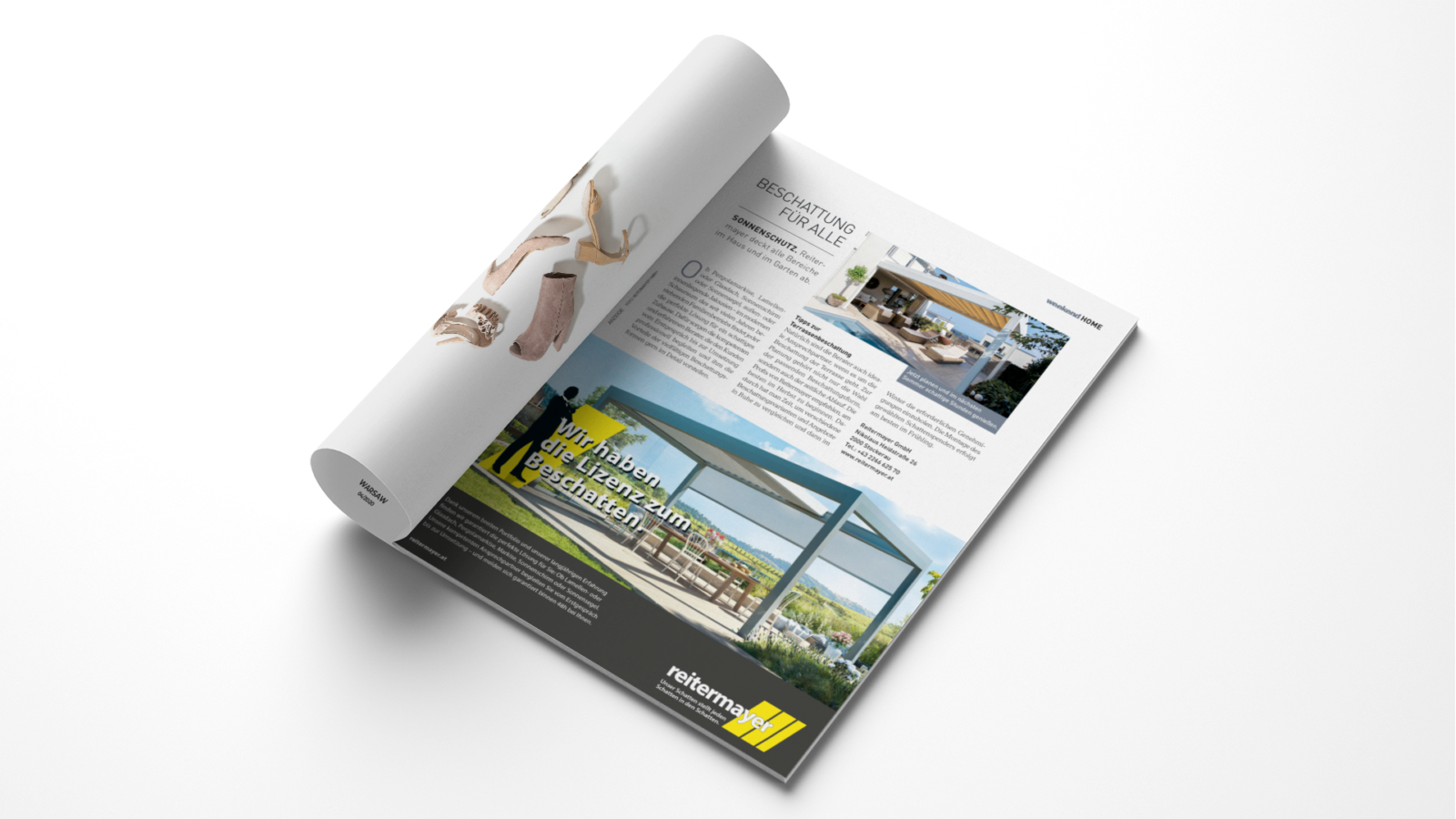 Für Sonnenschutz-Anbieter wie für Geheimagenten gilt: Beschattung ist eine vertrauliche, persönliche Sache. Daher haben wir Reitermayer als personifizierten, vertrauenswürdigen Beschatter inszeniert, der seine Aufgabe diskret erfüllt und stets zur Stelle ist, wenn man ihn braucht. Auch textlich spielen wir mit der Welt von 007 – und postulieren im Hörfunk, auf Printanzeigen und Advertorials sowie auf verschiedenen Online-Werbemitteln, dass wir im wahrsten Sinne des Wortes „jeden beschatten“.