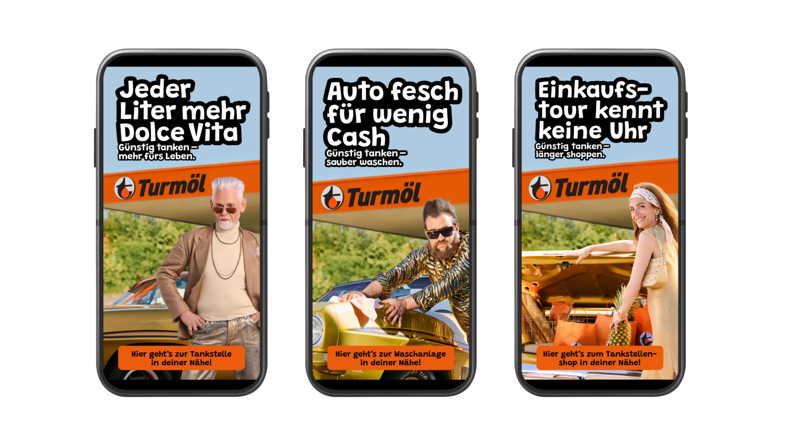 Denn mit über 260 Standorten ist Turmöl längst mehr als nur eine Tankstelle. Sie ist der praktische Mobilitätsbegleiter für den Alltag: verlässlich, nahbar und überraschend vielseitig. Moderne Waschanlagen, gut sortierte Shops, E-Ladestationen und großzügige Öffnungszeiten machen das Unternehmen zum verlässlichen Partner für mobile Menschen im ganzen Land. Ziel der Kampagne war es, den neuen Markenauftritt weiter zu stärken und noch sichtbarer zu machen.