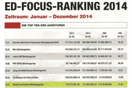 Reichl und Partner is also the seventh largest advertising agency in Austria in 2015