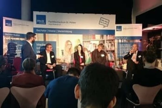 Our Max Ulrich Stolz as an advertising medium at the job fair of the FH Hagenberg!