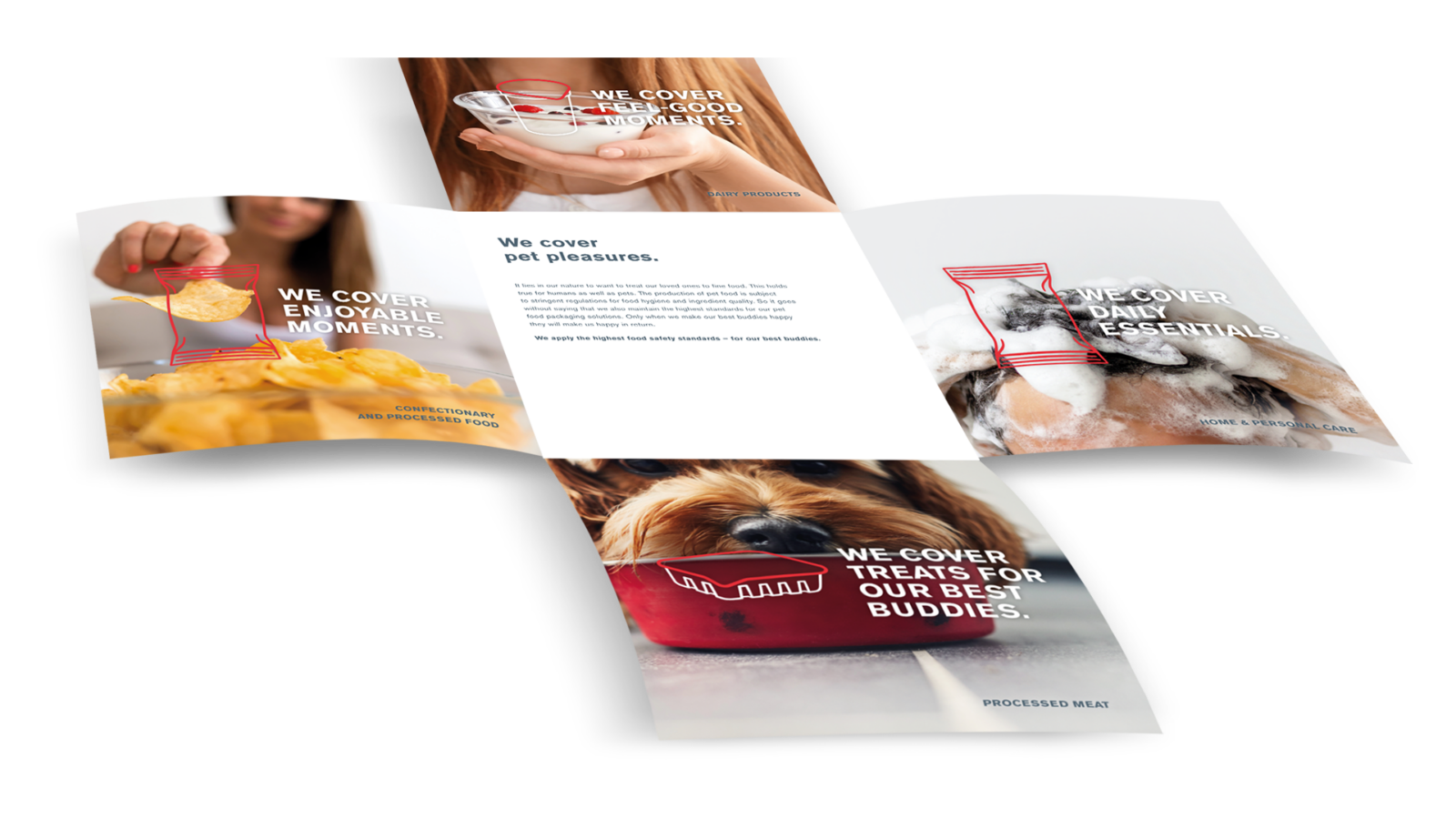 Die Kampagne hebt sich durch eine individuelle Bildsprache ab: Die Sujets zeigen verschiedene Produkte, wie ein Joghurt oder Kaffeebohnen im Echtbild, über welche die jeweils passende Verpackungsart in Form einer Illustration gelegt wird. Dabei ist jener Teil rot, der von Constantia Flexibles stammt (bzw. grün bei umweltfreundlicher Verpackung).