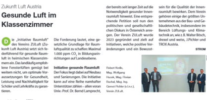 Der Verein ZULuft – Zukunft Luft Austria – ist eine federführende Organisation für gesunde Raumluft in Österreich. Seit der Gründung 2023 hat der Verein eine beeindruckende Bilanz an Initiativen und Projekten vorzuweisen, die darauf abzielen, positive Veränderungen und ein Bewusstsein für die Qualität der Innenraumluft zu bewirken. Mit der Initiative Raumluft setzt sich der Verein nun für eine gesetzliche Grundlage für die Raumluftqualität in Bildungseinrichtungen ein.