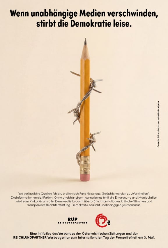 Eine Initiative des Verbandes der Österreichischen Zeitungen und der REICHLUNDPARTNER Werbeagentur zum Internationalen Tag der Pressefreiheit am 3. Mai.