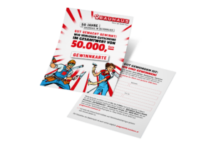 BAUHAUS Österreich feierte sein 50-jähriges Bestehen. Anlässlich des Jubiläums initiierte man ein großes Gewinnspiel, bei dem es Gutscheine im Gesamtwert von 50.000 Euro zu gewinnen gab und das mittels einer eigenen Kampagne beworben werden sollte.