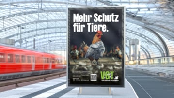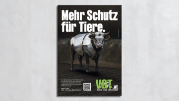 Die Herausforderung bei der Entwicklung einer Dachmarkenkampagne lag darin, bei einem Thema Aufmerksamkeit zu erzeugen, das zwar vielen wichtig ist, das jedoch viele ausblenden – schlicht, weil es oft schwer auszuhalten ist. Da sich der VGT jedoch ausschließlich über Spenden finanziert, braucht er diese Sichtbarkeit zum Überleben. REICHLUNDPARTNER ermöglichte dies unentgeltlich: Mit einer aufmerksamkeitsstarken Kampagne, die es schafft, Kommunikation für Tierschutz neu zu denken. So neu, dass man gar nicht mehr wegsehen kann