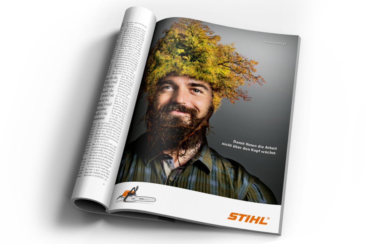 Die beiden Sujets wurden in zielgruppengerechten Print-Magazinen geschaltet und kamen darüber hinaus im STIHL Flugblatt, in Händlerinformationen, am POS sowie als Display-Banner zum Einsatz.