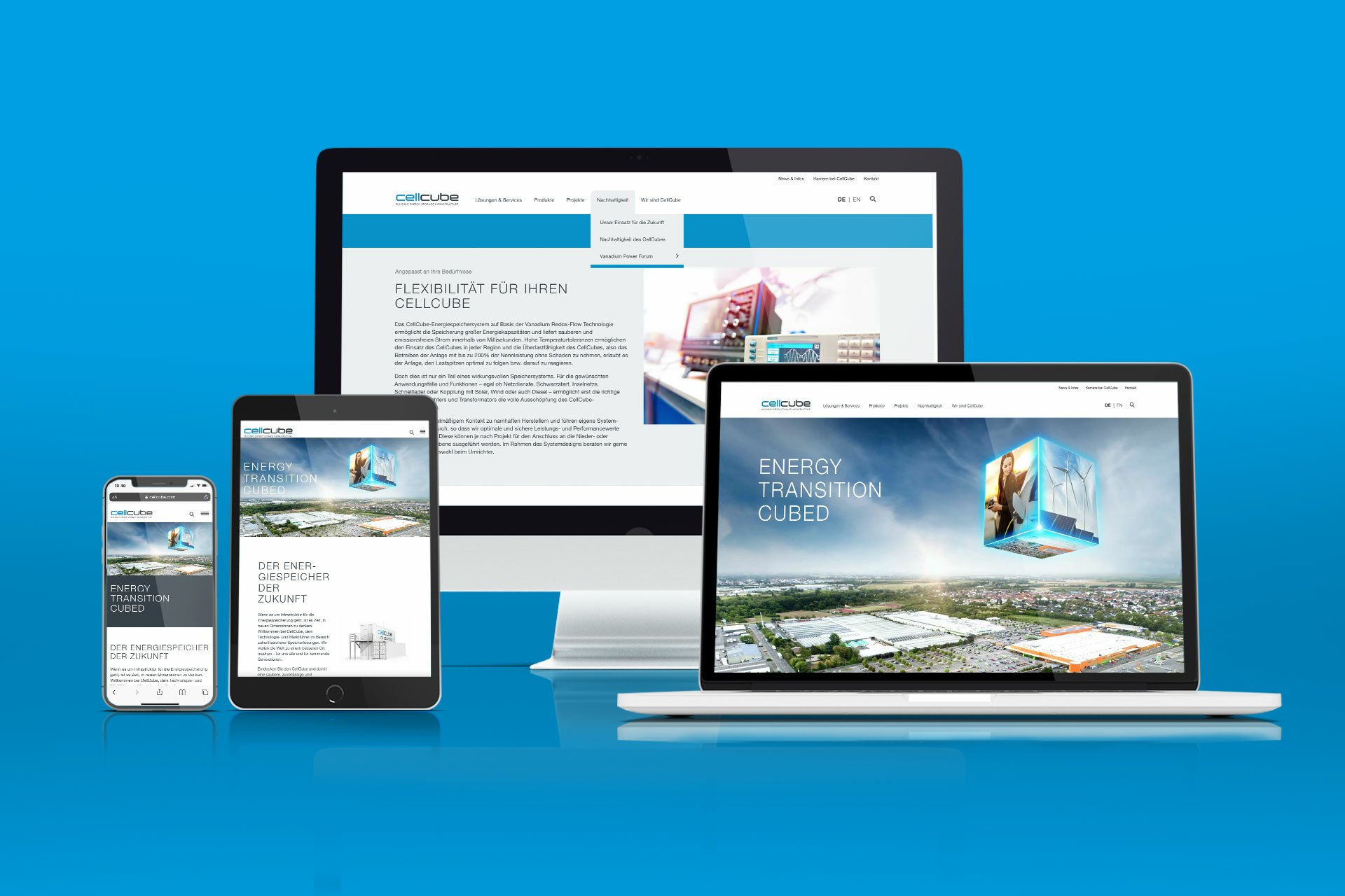 Energie ist eines der Kernthemen unserer Zeit. Für eine nachhaltige, saubere und zuverlässige Langzeit-Energiespeicherung braucht es die richtige Infrastruktur. CellCube ist Technologie- und Marktführer im Bereich zukunftssicherer Speicherlösungen. Die Vanadium Redox-Flow Batterien des Unternehmens bewähren sich bei verschiedensten Anwendungsfällen: von der Integration erneuerbarer Energien im Stromnetz bis hin zum Einsatz in Industrieanlagen, Gewerbegebieten oder Speicherparks. Mehr als 130 Anlagen wurden bereits weltweit installiert.