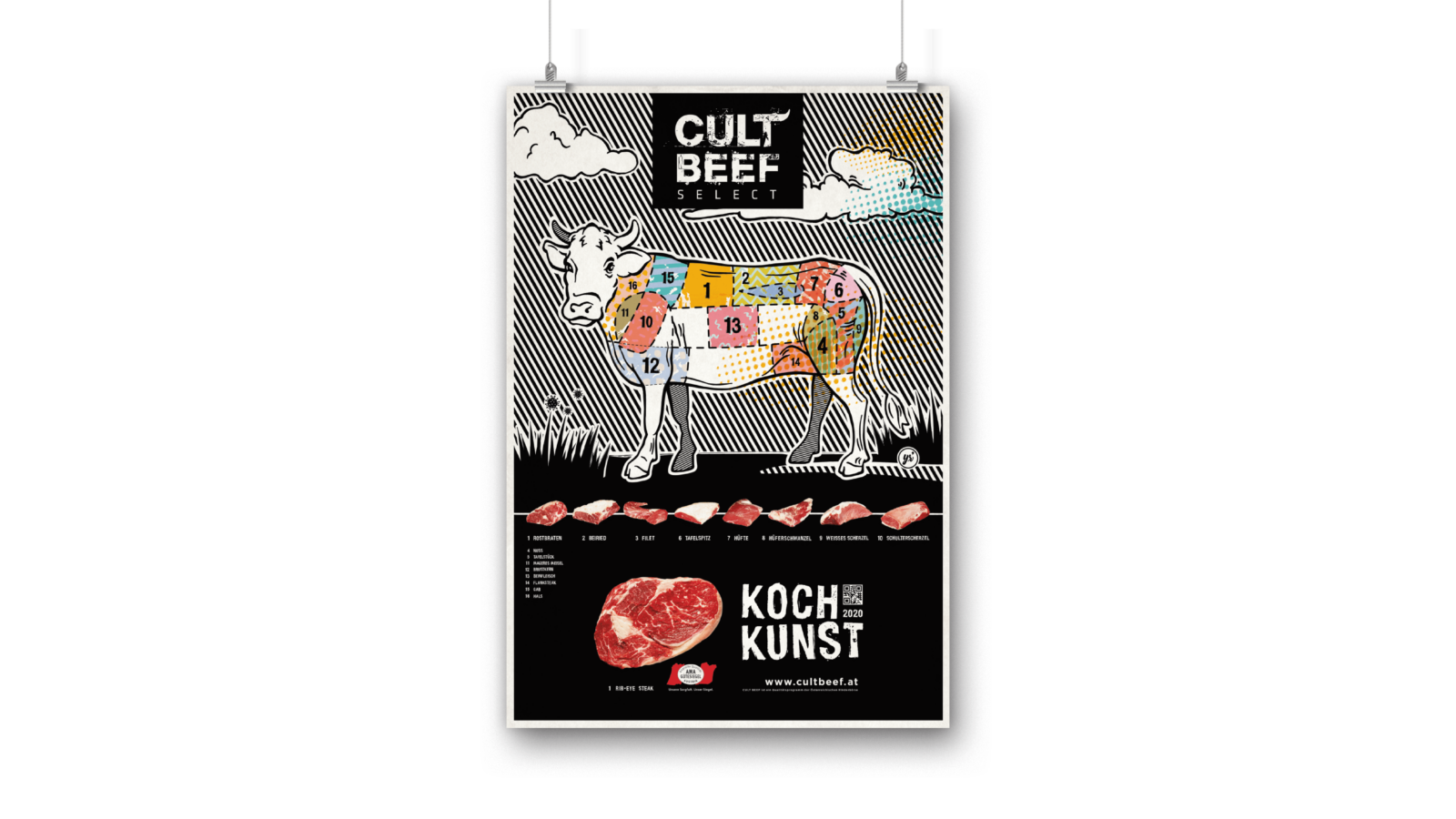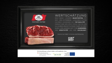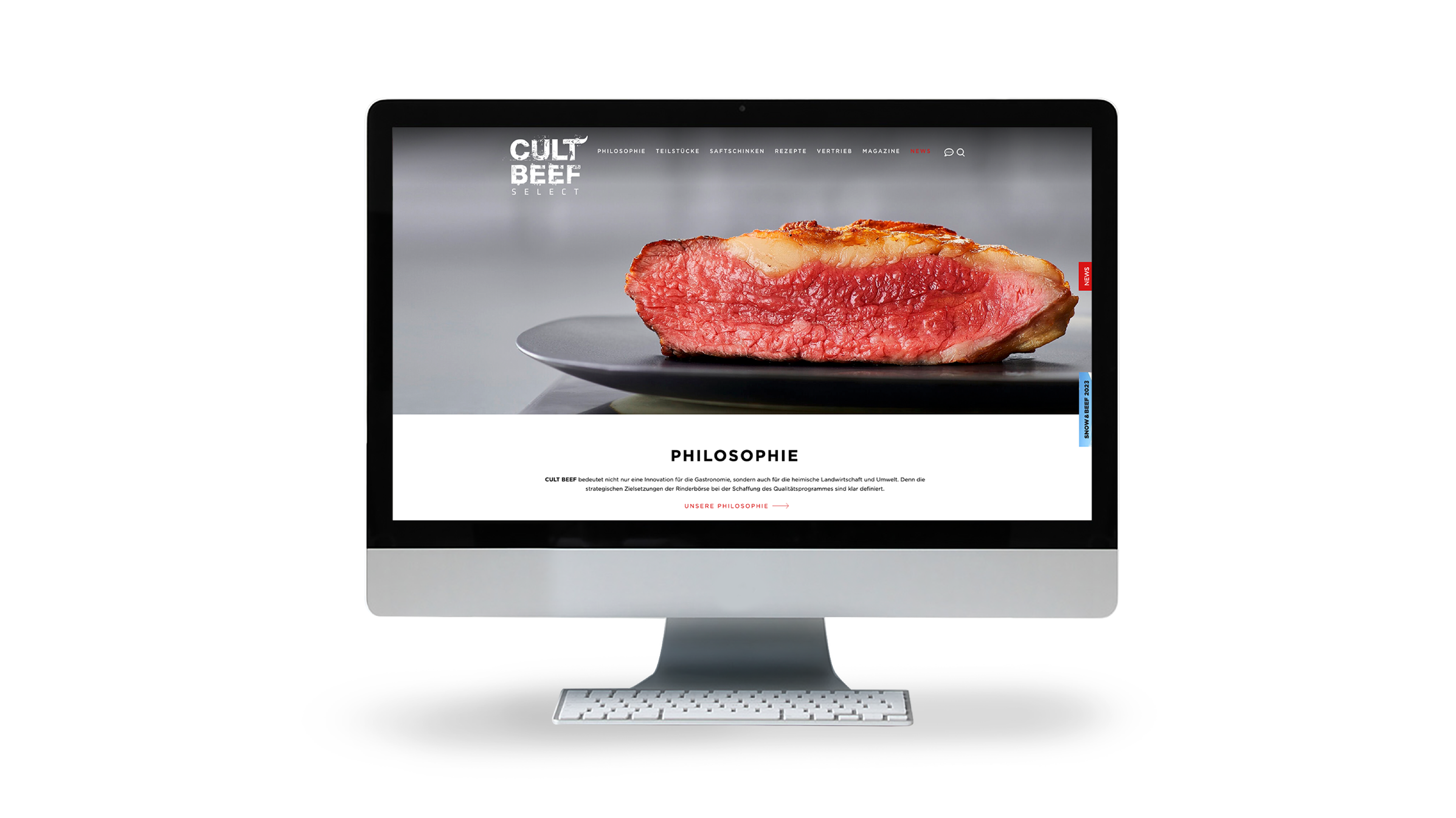 CULT BEEF ist eine österreichische Marke für handverlesenes Qualitätsrindfleisch. Von den Expert:innen der Österreichischen Rinderbörse nach strengen Kriterien ausgewählt, garantiert CULT BEEF nicht nur beste Fleischqualität, sondern auch die AMA-Lukullus-Auszeichnung. Unser Ziel war es daher, einen eleganten Markenauftritt und eine ansprechende Website zu entwickeln, die den hohen Anspruch der Marke unterstreichen und eine Revolution in den Qualitätskriterien Gastronomie, Landwirtschaft und Umwelt repräsentieren.