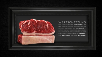 CULT BEEF musste sich in einem gesättigten Markt positionieren und dabei die einzigartige Qualität seiner Produkte hervorheben. Somit sollte das Design nicht nur optisch ansprechend, sondern auch informativ sein, um selbst die anspruchsvollsten Kund:innen zu überzeugen. Dabei galt es, eine Bildsprache zu kreieren, die sowohl Eleganz als auch die Hochwertigkeit des Rindfleischs widerspiegelt und gleichzeitig die innovative Philosophie von CULT BEEF kommuniziert.