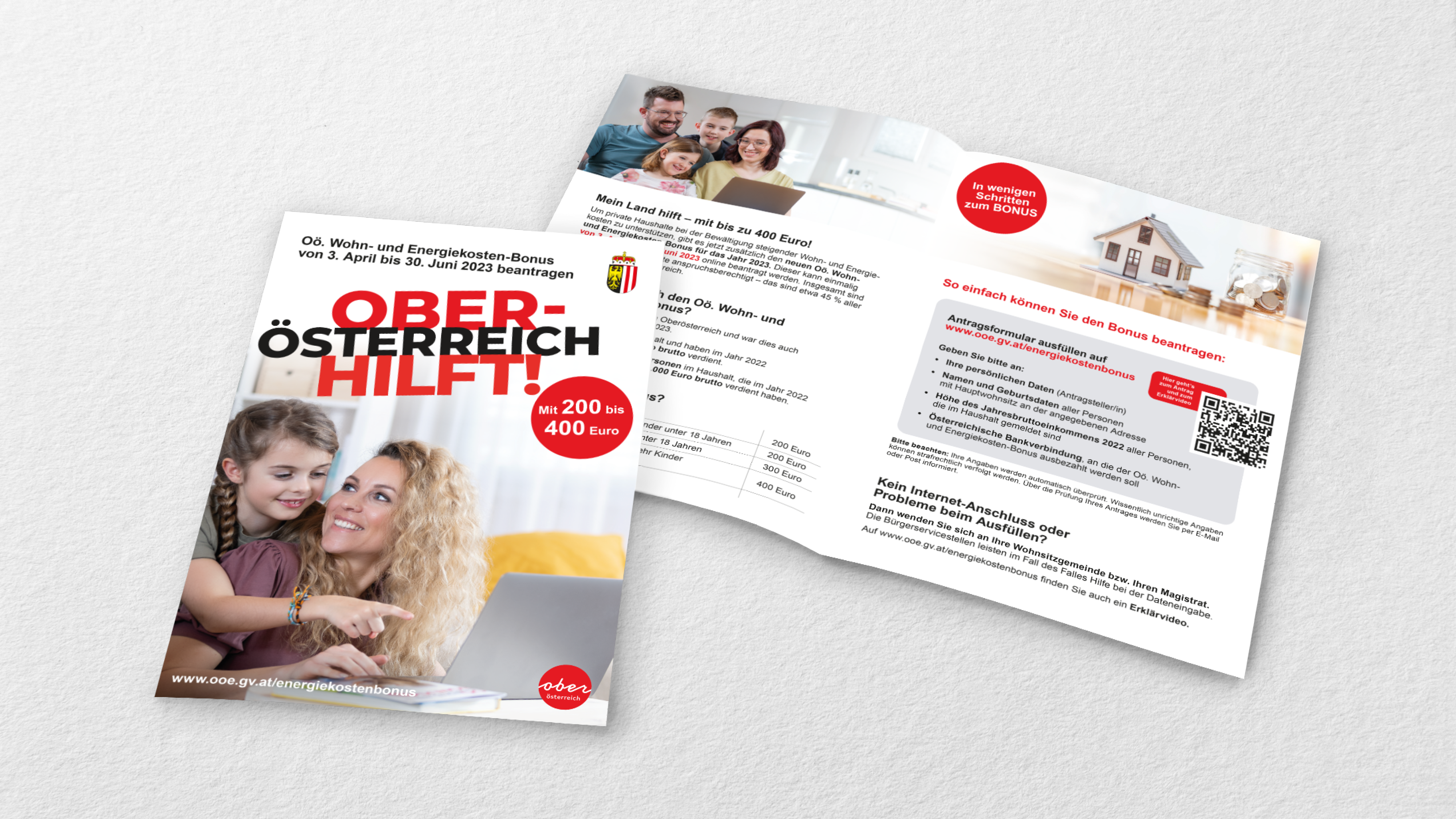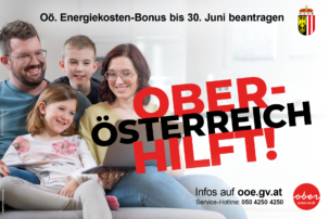 Um private Haushalte bei der Bewältigung der steigenden Wohn- und Energiekosten zu unterstützen, gibt es zusätzlich den neuen Oö. Wohn- und Energiekosten-Bonus für das Jahr 2023. Dieser kann einmalig von 3. April bis 30. Juni 2023 online beantragt werden. Pro Haushalt gibt es 200 Euro, für Haushalte mit Kindern bis zu 400 Euro. Ob man anspruchsberechtigt ist, hängt vom Jahresbruttoeinkommen ab.