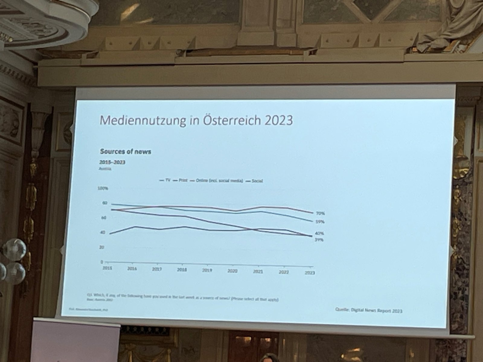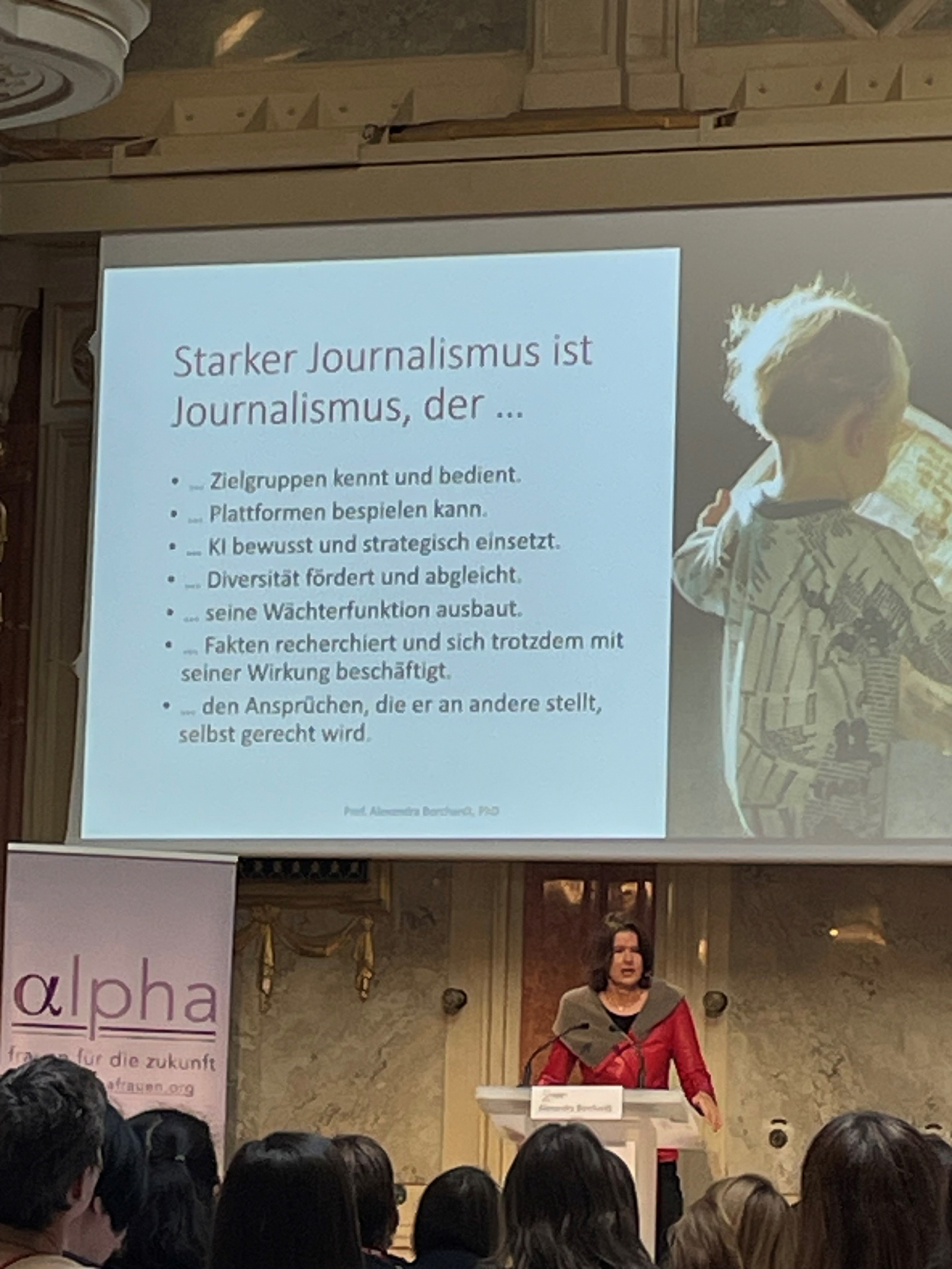 Eine Frage gleich vorweg: Welche Bedürfnisse müssen Medien für Rezipienten heute erfüllen. Lesen, sehen oder hören wir diese, um uns zu informieren, um uns auf dem Laufenden zu halten, um uns zu unterhalten oder um uns Perspektiven aufzeigen zu lassen. Diese definierten User:innen-Needs gilt es in der Berichterstattung in Print, Online oder Digital zu beachten, damit der Medienkonsum nicht weiter sinkt. Dies zeigte auch Alexandra Borchardt in ihrer Keynote „Mehr Wahrheit wagen!“ auf. Die Professorin in München und ehemalige Redakteurin bei der Deutschen Presseagentur, der Financial Times oder der Süddeutschen Zeitung ist zwar überzeugt, dass auch Tik-Tok oder Podcast informieren können und dies niederschwellig und für neue Zielgruppen, jedoch generell das Vertrauen in Medien wieder aufgebaut werden muss.