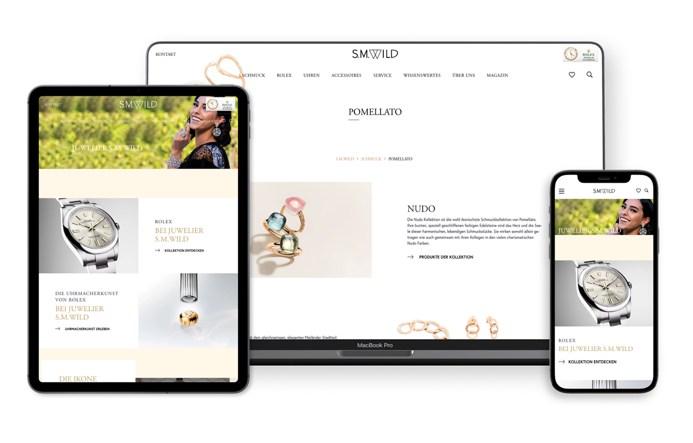 Juwelier S.M.Wild, ein renommiertes Schmuck- und Uhrenhaus, benötigte eine moderne, ästhetisch ansprechende Online-Plattform, um seine exklusiven Kollektionen und Markenpartnerschaften zu präsentieren. Ziel war es, die Essenz des traditionellen Handwerks mit einem zeitgemäßen Benutzererlebnis zu verbinden.