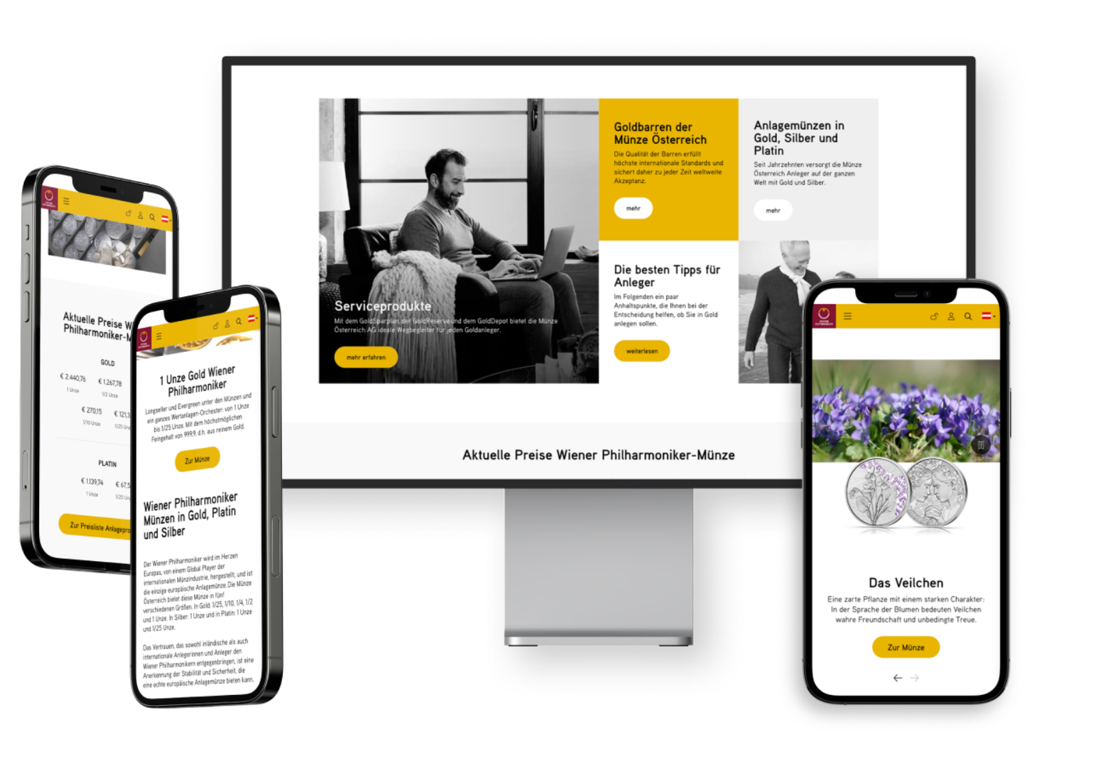 Die gesamte Konzeptionsphase wurde durch gemeinsame Workshops mit der Münze Österreich begleitet, in der in enger Abstimmung das zukünftige Look & Feel sowie die funktionalen Anforderungsdokumente erarbeitet wurden. Für größtmögliche Flexibilität bei einheitlichem Erscheinungsbild wurde von Reichl und Partner ein Set an Content-Sektionen entwickelt, die beliebig kombiniert und visuell flexibel verwendet werden können. Von Beginn an wurde hierbei auf Eignung für das Responsive Design sowie auf die Anforderungen hinsichtlich Barrierefreiheit geachtet. Die Inhaltsstruktur wurde gemeinsam mit dem Kunden überarbeitet und fokussiert nun verstärkt auf die Kernthemen. Gleichzeitig sind die Inhalte stark vernetzt, was vor allem Cross- und Up-Selling fördern soll.